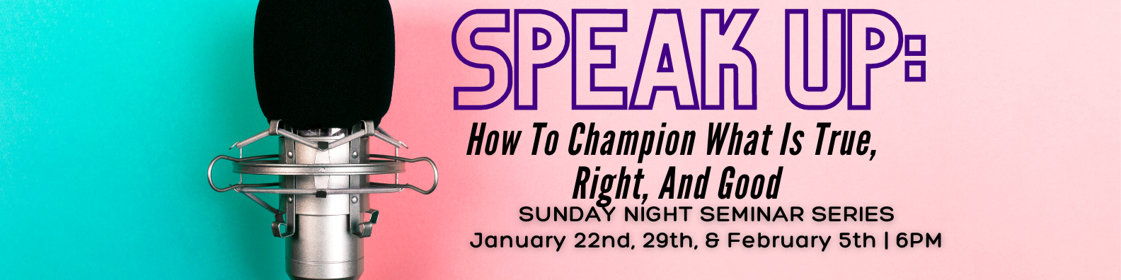 “How to Champion What is True, Right, and Good” is a three-part Sunday Night Seminar series beginning January 22nd at 6:00 p.m.